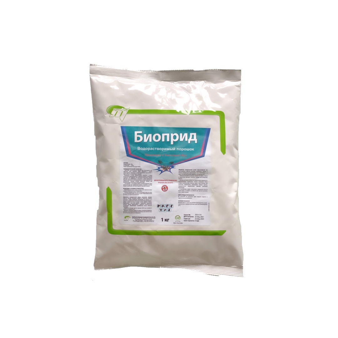 Инсектицидное средство Биоприд в качестве действующих веществ содержит Имидаклоприд 10%, Z-9 Tрикозин (половой феромон мух) 0,10%, а в качестве вспомогательных веществ- сахар и денатониум бензоат (горький компонент) до 89,9%. Представляет собой водорастворимый порошок. Биоприд - применяют для уничтожения мух на объектах различного типа в виде раствора путем нанесения мазков или распылением на поверхность. Расфасовывают по 120 г, 400 г и 1000г в алюминиевых пакетах или пластмассовые банки.