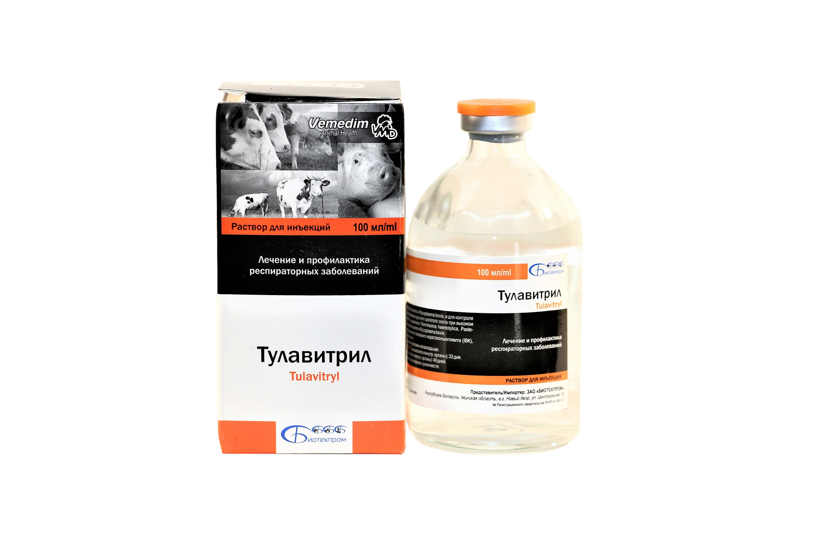 6. Тулавитрил назначается с лечебной целью при бактериальных инфекциях органов дыхания у крупного рогатого скота, вызываемых Mannheimia (Pasteurella) haemolytica, Pasteurella multocida, Haemophilus somnus и Mycoplasma bovis, чувствительными к тулатромицину, а так же для лечения инфекционного кератоконьюктивита крупного рогатого скота, вызываемого Moraxella bovis и Neisseria spp.;